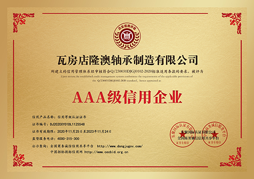 AAA級信用企業(ye) 企業信用等級(jí)證書